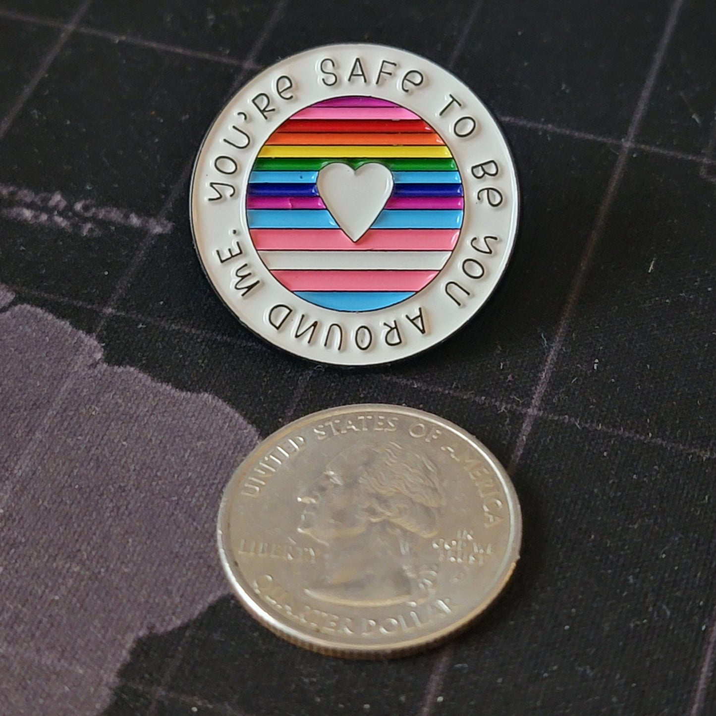 Round Rainbow Brooch, "You're Safe To Be You Around Me" Badge Pin, LGBTQIA+ Badges with Inspirational Quote, Lapel Brooches Gifts for Clothing Backpacks Hats Decoration